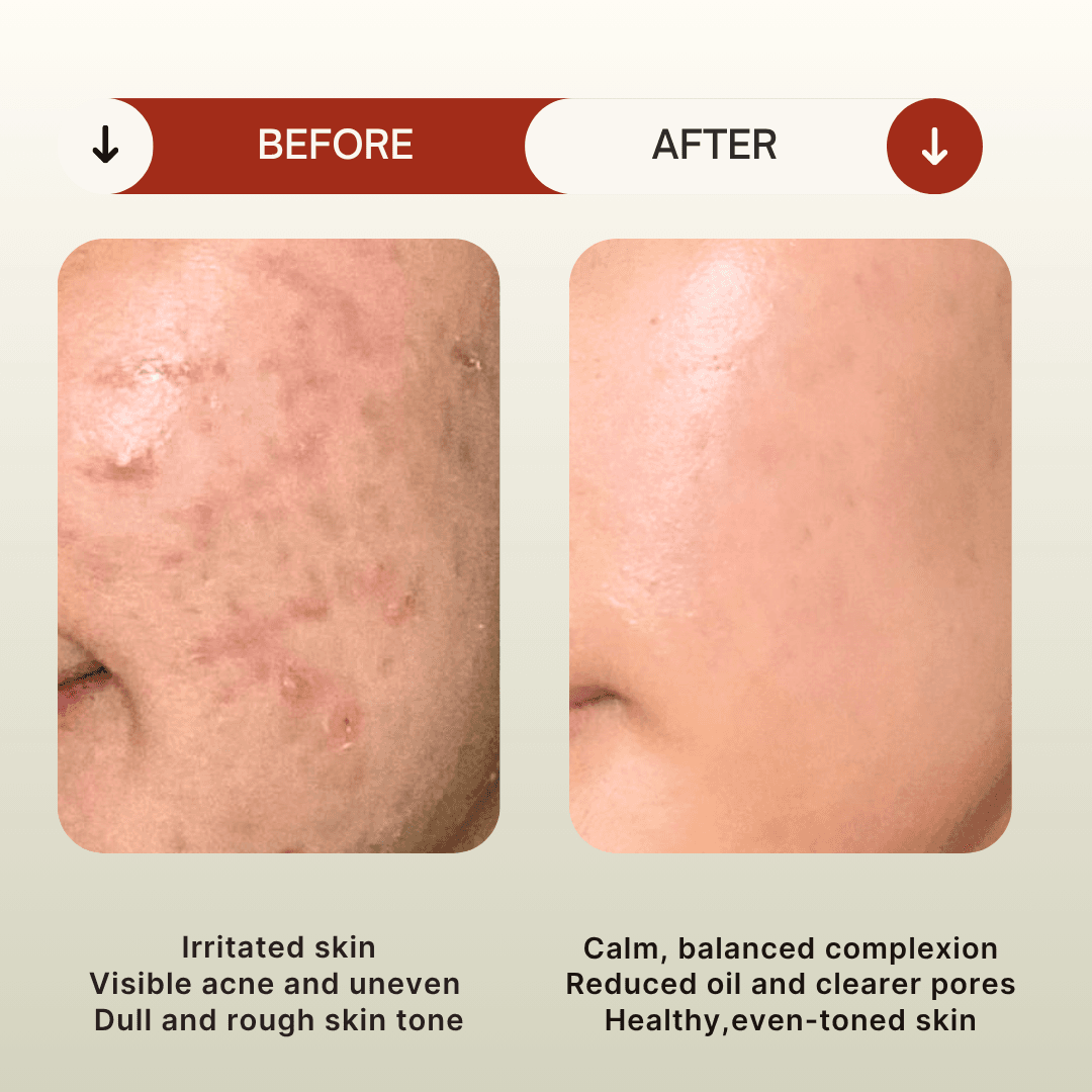 - Suitable for acne-prone, hormone-affected, oily skin, sensitive, redness-prone, inflamed skin that needs calming, soothing, and fast repair.
